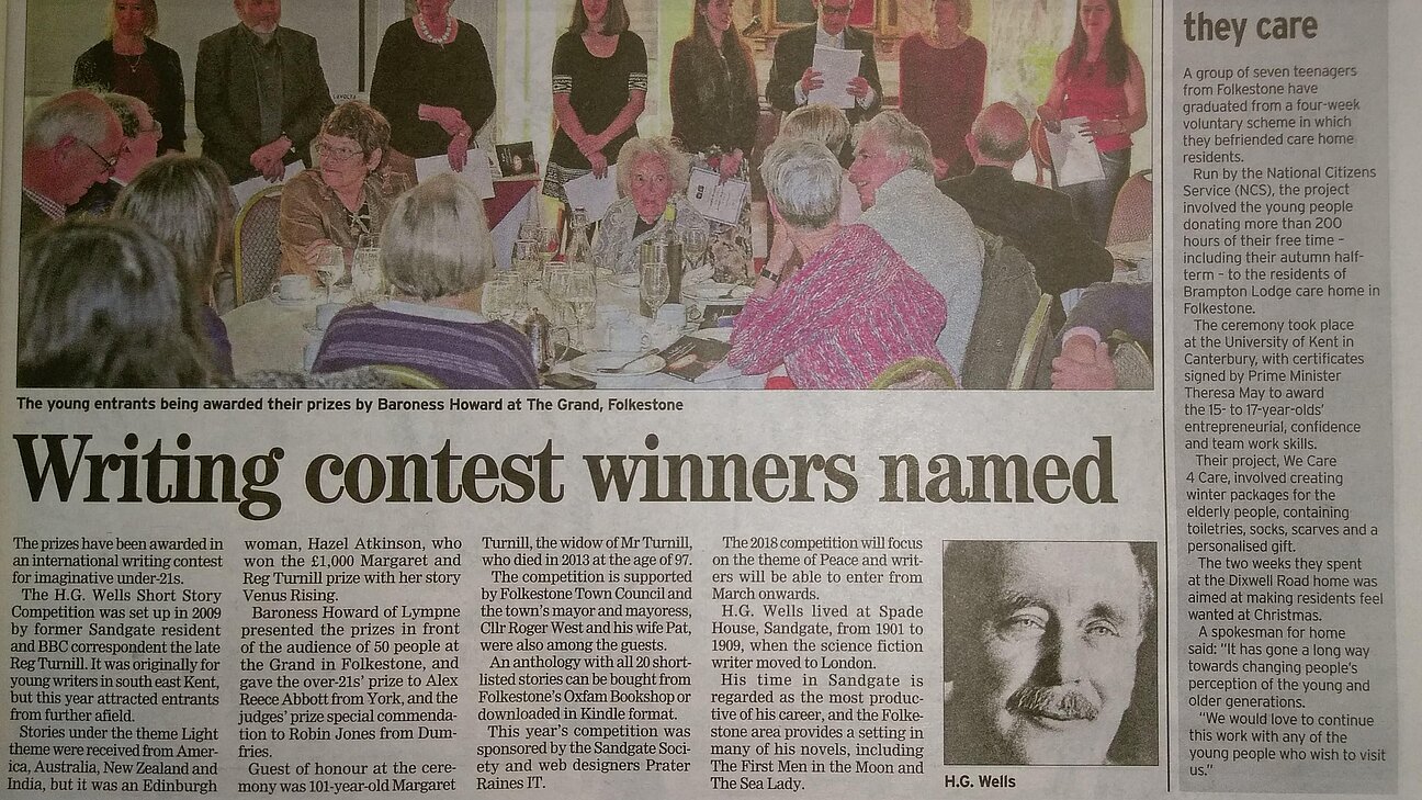 Well this IS nice: an article on our local paper about the H G Wells Short Story Competition 2017, with Prater Raines named as a sponsor.