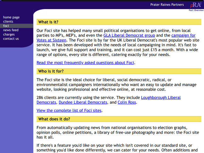 We moved from renting servers to colocating our own equipment in a data centre on Marsh Wall in the Isle of Dogs. It was close enough to my house that I configured everything at home and cajoled a friend into helping me carry the servers there on foot. Once installed this increased redundancy, performance, and resilience for all of our sites. Thus Asquith and Gladstone began a so far uninterrupted trend for naming servers after Liberal leaders, and by the middle of the year they were hosting well over 250 Lib Dem websites.