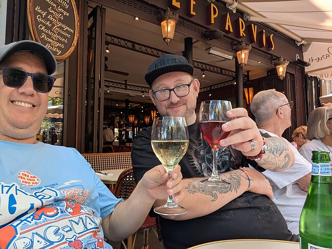 Karlsruhe is a bit of a pain by plane, sited about an hour’s train ride from three different regional airports, and in any case Gary can’t fly, so we met once again in Paris for the comfortable 2½ hour train ride on the TGV Est. It’s a mantra of mine to take the opportunity to see the world when I travel for work which manifested as a couple of extra days in Paris (highlights swimming in the Seine, mixing perfume at the Fragonard museum) and a mooch around Karlsruhe on a Voi e-scooter (highlights also swimming this time in a 50m outdoor pool, the ZKM’s bizarre mix of high art and retro tech including web browser and video game exhibitions).