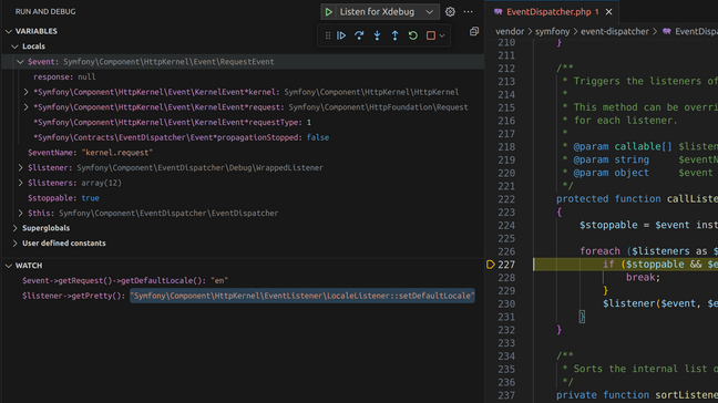 My colleague Gary reminded me it’s possible to add links to the URLs in Exception and error messages and the output of var_dump and the Symfony error handler.