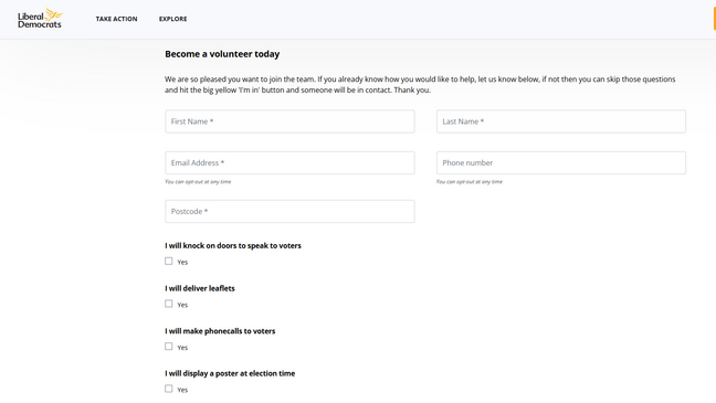 - Engage users to sign a petition, sign up for news, sign up for an event, volunteer, become a member / supporter